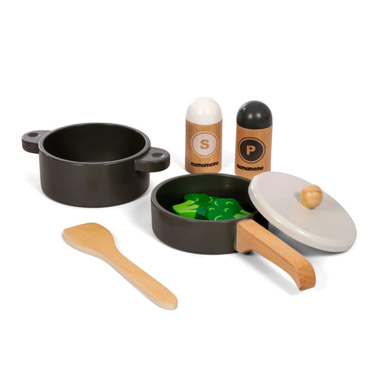 MamaMemo Wooden Pot and Pan Set, 6 pcs