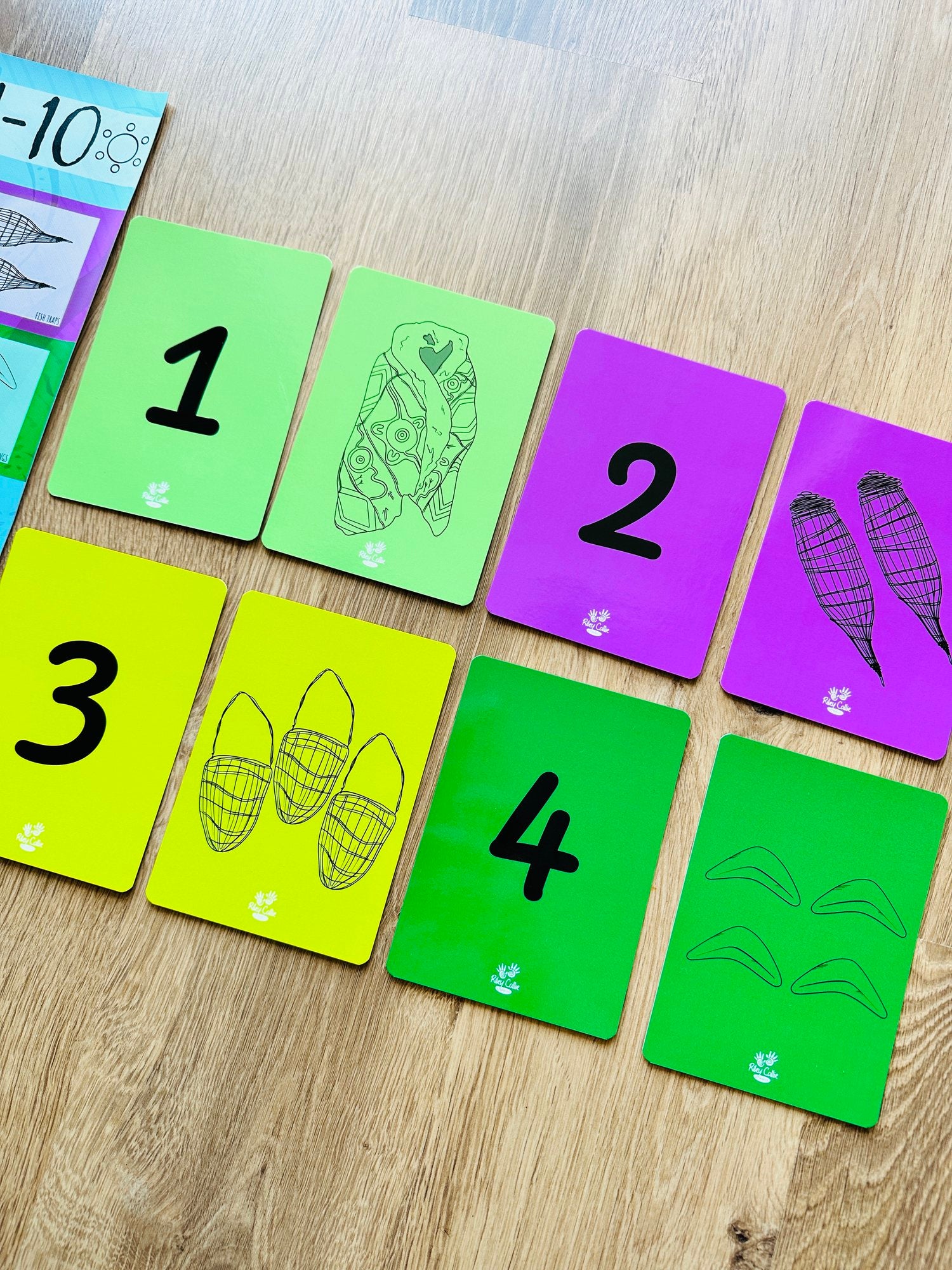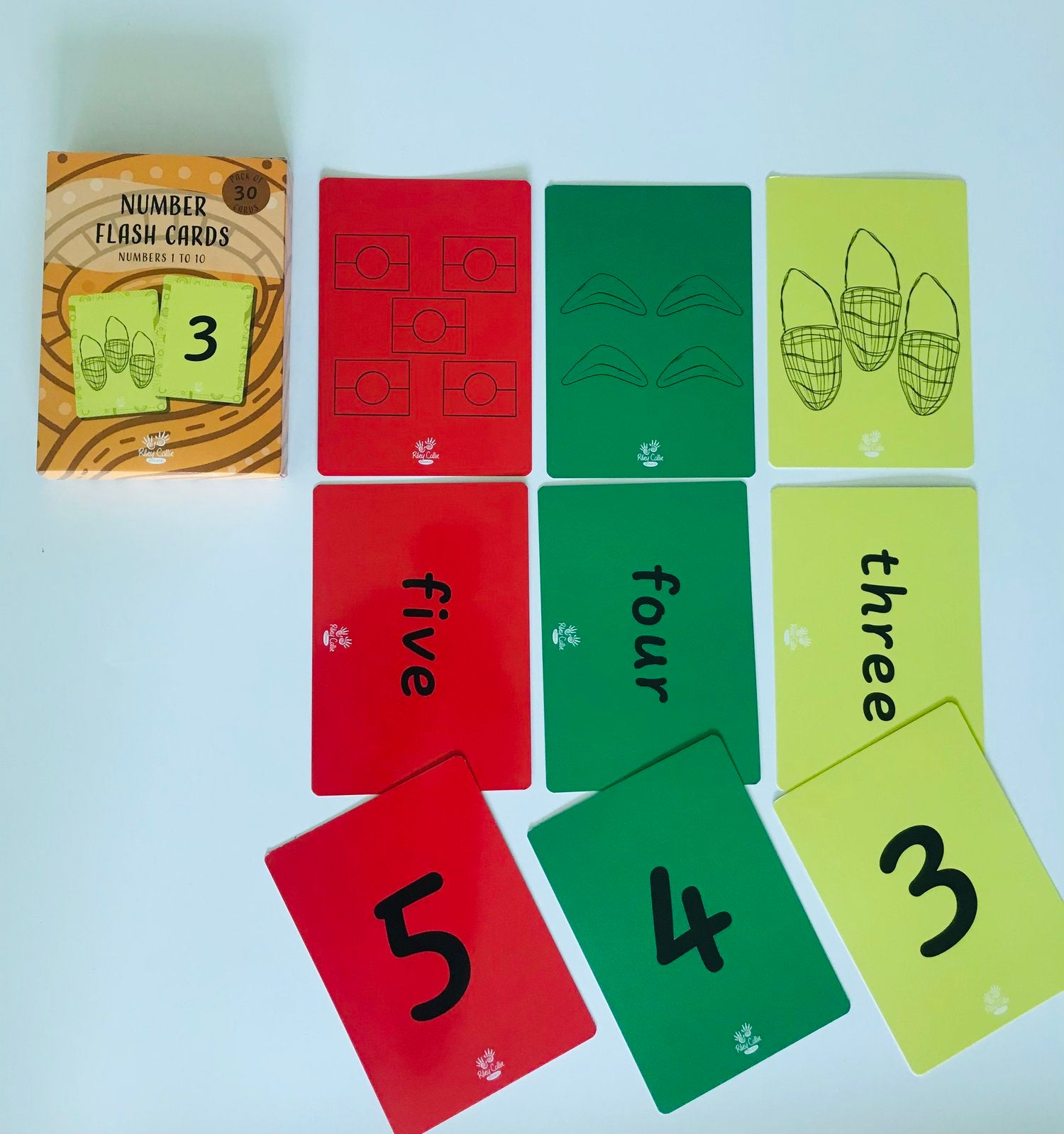 These durable flash cards feature lovely Aboriginal artwork by Gamilaraay artist and graphic designer, Mirii Designs and serve as a delightful introduction to counting.