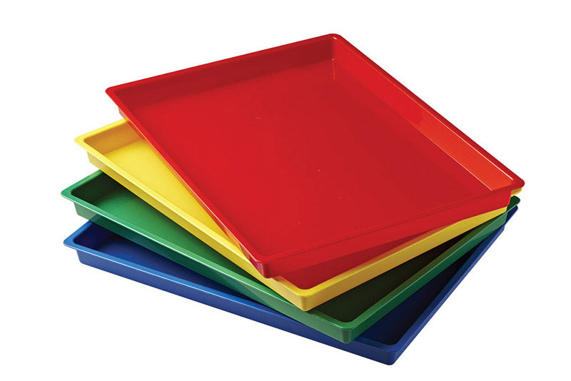 These durable trays are suitable for carrying glue, paint or collage materials for each art group.