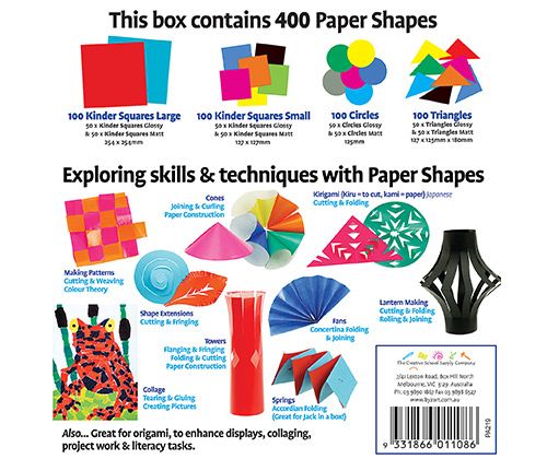 An assortment of paper squares, triangles and circles pre-cut for your convenience. Brighten up classroom displays with these shapes.