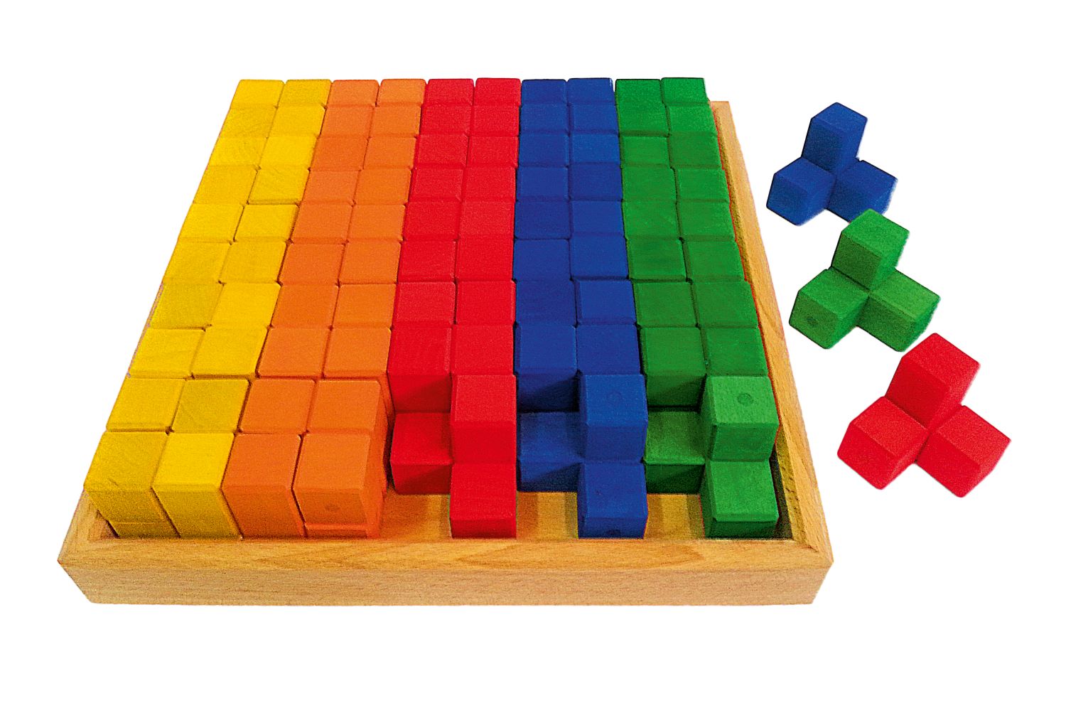 50 pieces coloured | Blocks: (= 2 pieces): 5 x 5 x 5 cm | Frame: 28 x 28 x 6 cm