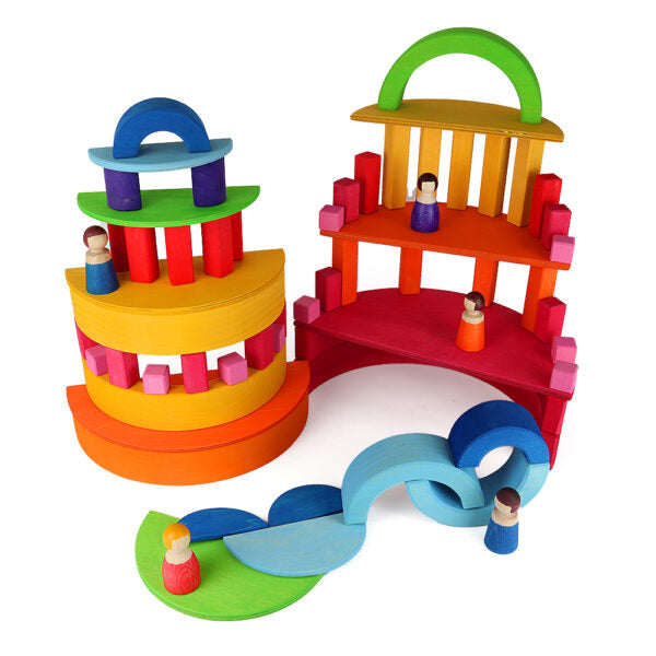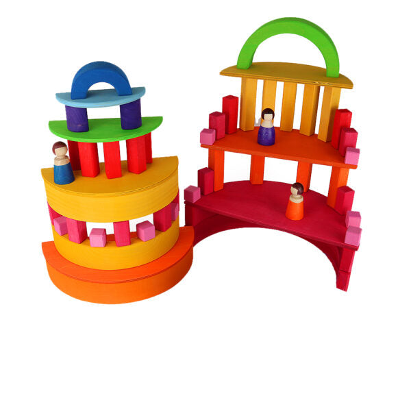 An open ended play set for use on its own or in combination with rainbow blocks.