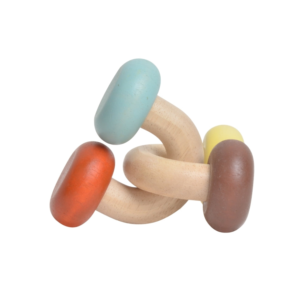 The Blue Ribbon rattle series are playful mixes of natural wood and colours.