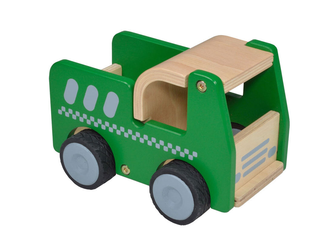 Constructed from durable plywood, the Blue Ribbon Dump Truck is sturdy and moves smoothly on quality rubber tyres.