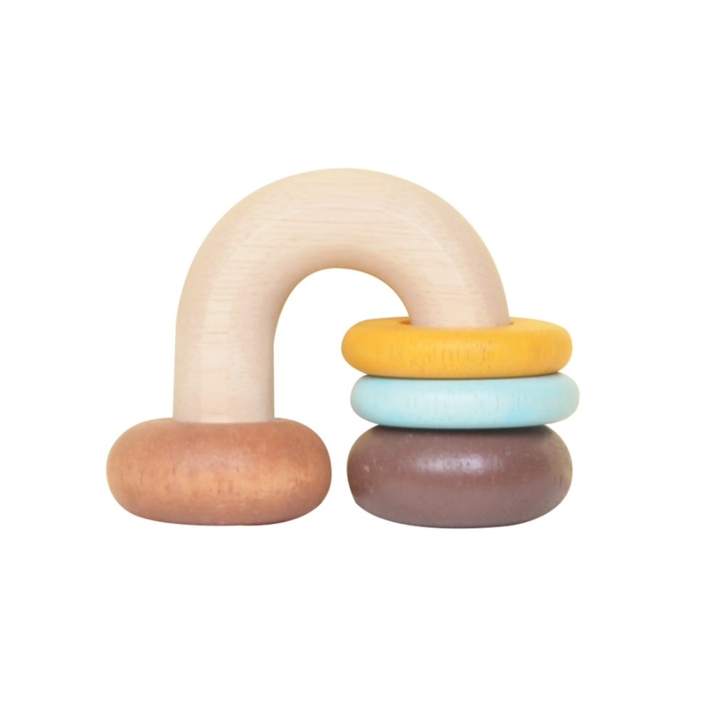 The Blue Ribbon rattle series are playful mixes of natural wood and colours.