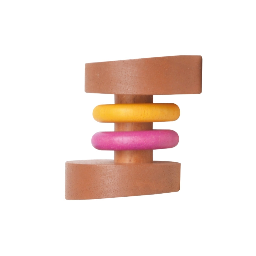 The Blue Ribbon rattle series are playful mixes of natural wood and colours.
