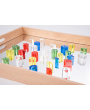 Polished crystal colour and clear acrylic shapes with smooth, gleaming tactile surfaces. The set contains 5 different shapes designed to encourage children to create pictures, patterns, sequences and use in imaginative play.