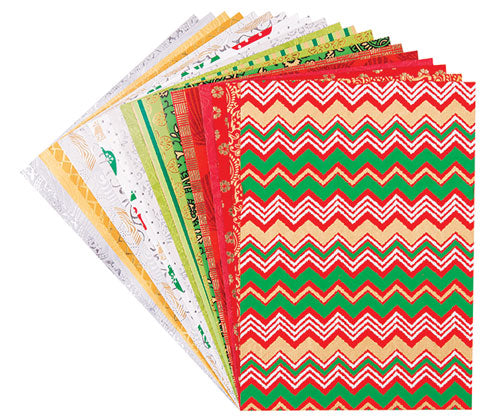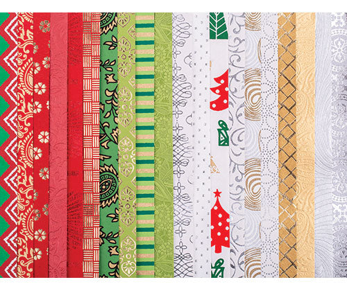 - Beautifully embossed, foiled and printed handmade papers in an assortment of Christmas colours