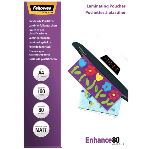 Fellows-Laminating Pouches A4 80 Micron Matte 100pk