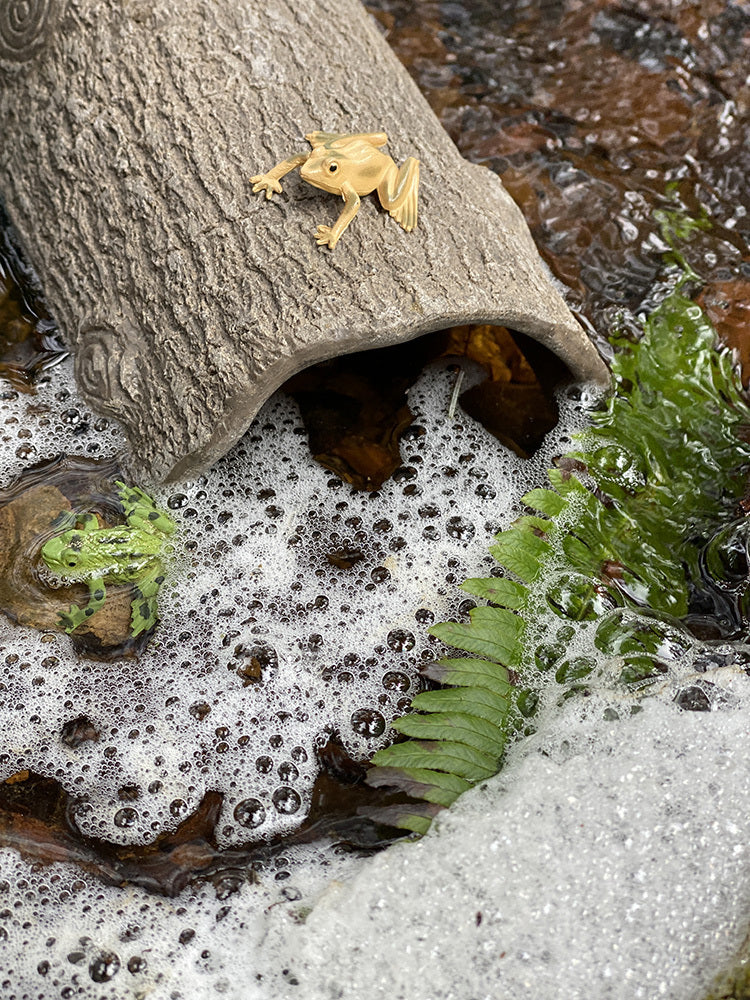 Made from a durable stone and resin mix, it can be used in bark, mud, sand and water.