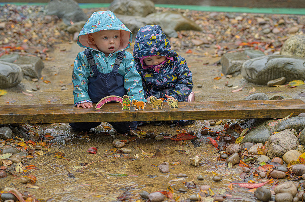 These bright and inviting wooden characters from the tale of the Billy Goats Gruff enable children to revisit the story in self-directed play and create new versions of their own during small world activities.