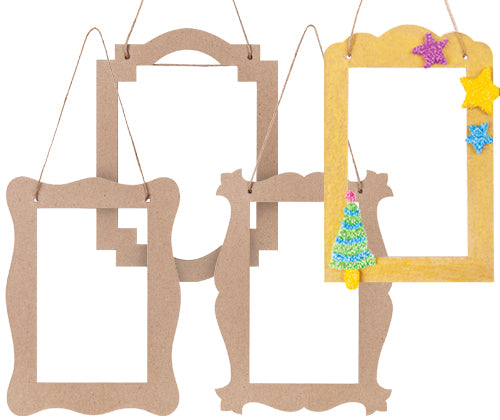 These Papier Mache Hanging Frames 12s are a fun and creative way to showcase mini works of art, a photograph or maybe an inspirational message. 4 designs with string attached ready for decorating with Street Markers, paint, pastels or other mediums.