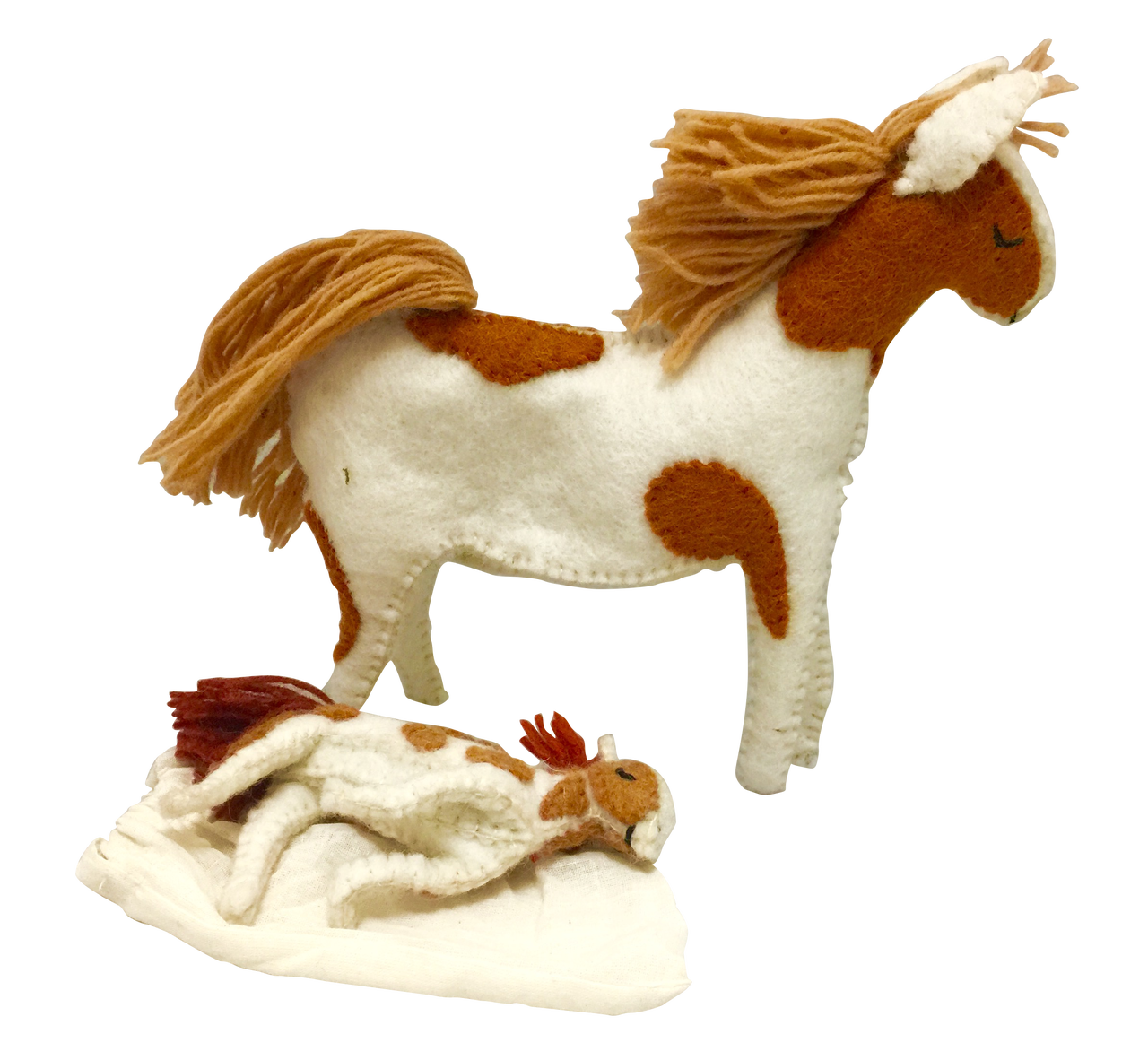 Hope has a baby, is a beautiful book that comes with a hand made felt horse and a ....felt pony, another in the Farmer Fred's Farm series of books.