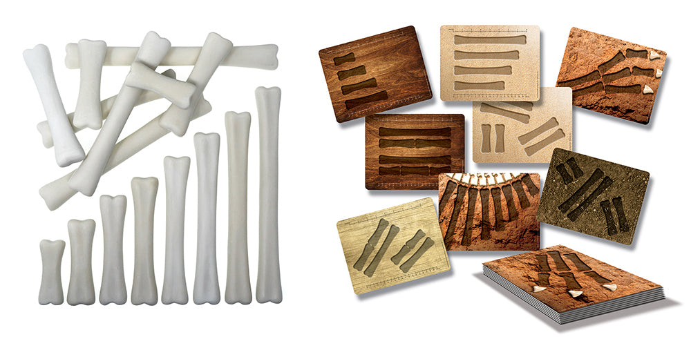 Use the Activity cards to help encourage children to match, count, compare, order, and measure the bones they discover.