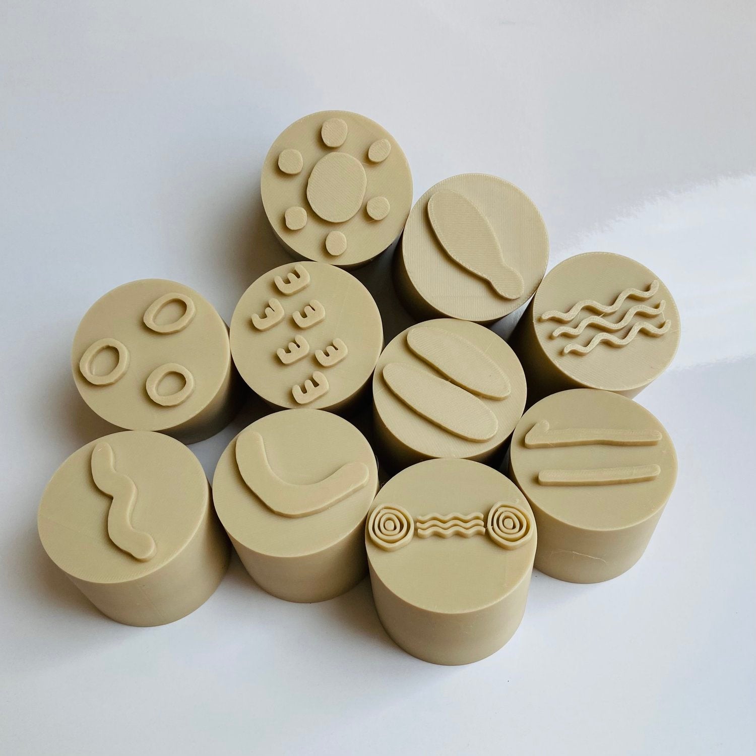 Introducing our new Australian-made, natural stampers, crafted with care from sustainable and eco-friendly materials. This versatile tool is designed to elevate your playdough experience while prioritising environmental consciousness. Made from 100% biodegradable, eco-friendly plant-based material derived from renewable resources, our natural eco stampers offer a guilt-free solution for your playtime adventures.