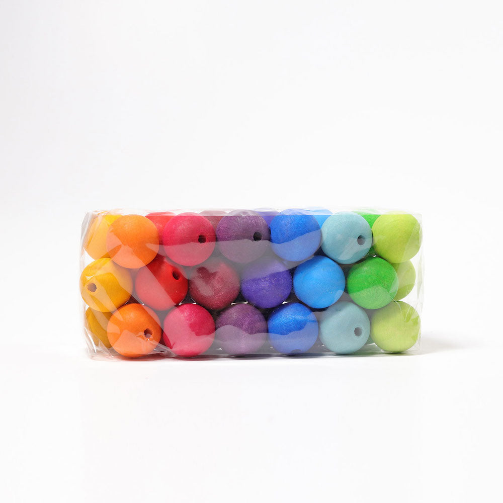 This bag of beads contains 36, 30mm wooden beads in 12 rainbow colours.