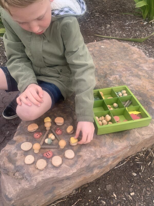 Explore Nature’s forest floor with this generously filled 71-piece set, made up of high-quality wooden mushrooms, leaves from all seasons, wood chips, acorns, sticks, ladybugs, and wooden rocks.