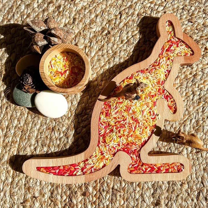 Our wooden kangaroo sensory tray is designed to provide learning and open ended play opportunities for children.