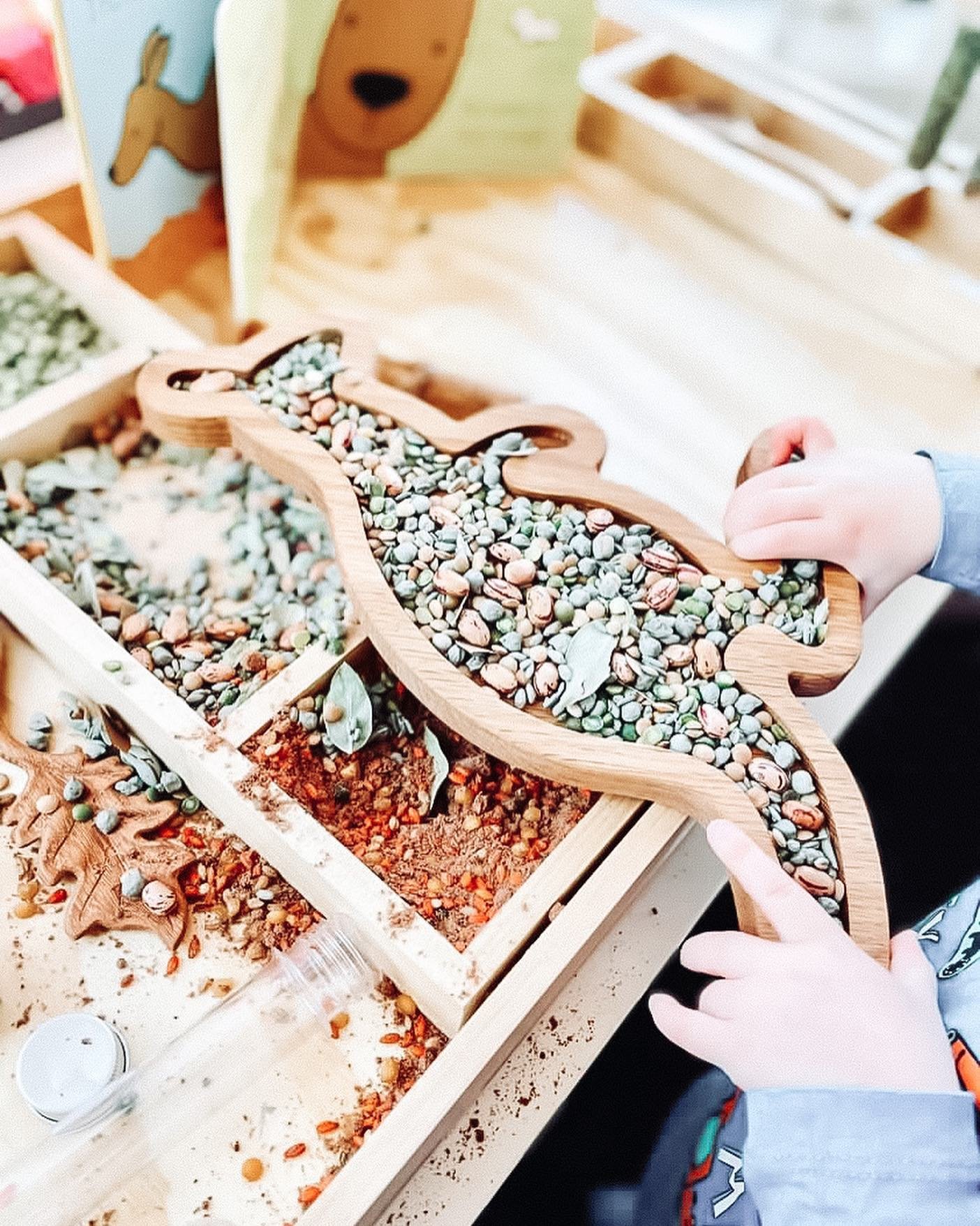 We encourage filling the tray with different materials and textures to provide beautiful moments of creativity and imagination.