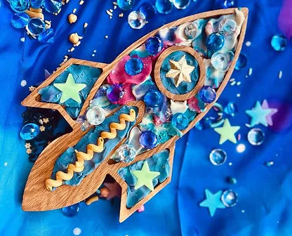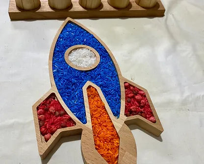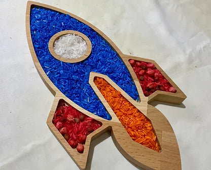 Unlock your child’s imagination with our beautifully crafted Australian-made wooden rocket sensory tray. Designed for open-ended play, this tray offers a versatile space for little ones to explore textures, practice sorting, and create imaginative small-world setups. Perfect for developing fine motor skills, the rocket sensory tray encourages hands-on learning and creative discovery through endless possibilities.