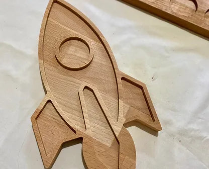 The rocket tray is finished with a non-toxic, water-resistant oil, ensuring it's safe for children and environmentally friendly. Please note that due to the natural variations in timber, the rocket tray may vary slightly in color.