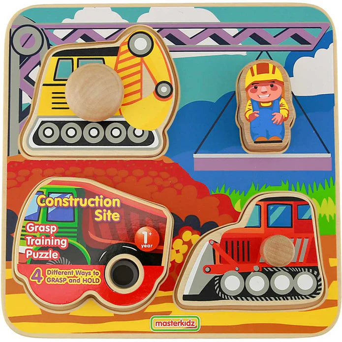 This oversized wooden Transportation Knob Puzzle features bright colours with easy grip extra thick pieces.