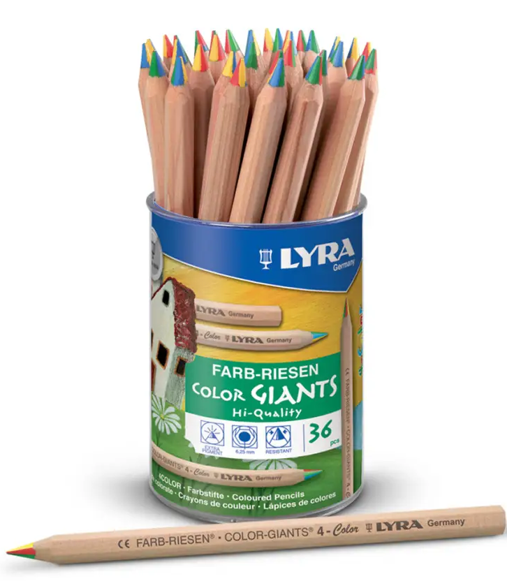 Container bulk buy of 36 hexagonal pencils with natural timber shafts, rainbow coloured.