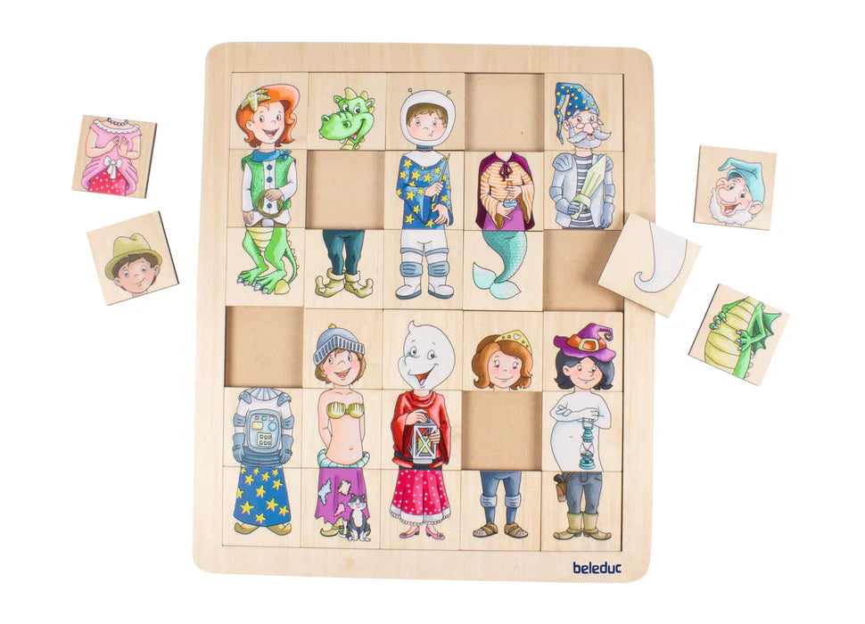 A princess with a lasso or a dwarf with flippers? Anything is possible in this fun puzzle. Put the fantasy characters together correctly using their clothing or create completely new characters.