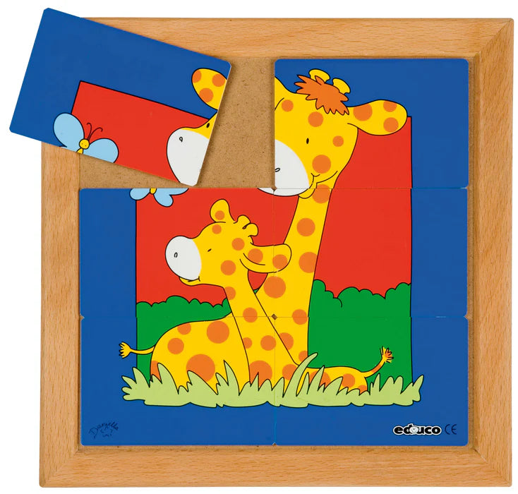 The puzzles vary from 6 to 12 plastic pieces each and have square or rectangular pieces.