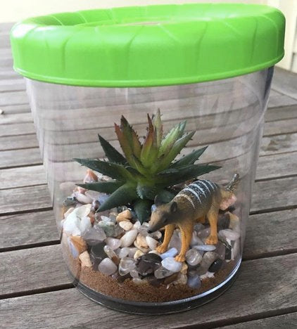 It is REVERSIBLE with a dual function: closed for observing creatures inside the jar, open for catch and observing on the spot. It is a bug viewer as well as a magnified bug catcher.