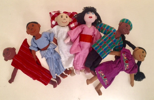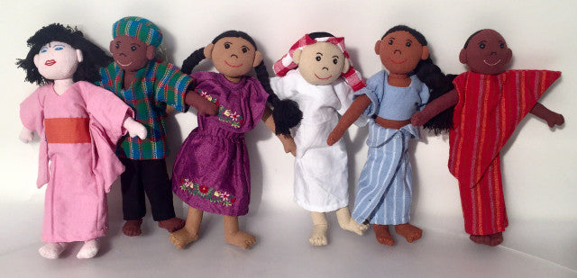Ethnic Doll Set consists of Mexican, Japanese, Ghanaian, Arabian, Sri Lankan and Kenyan dolls.