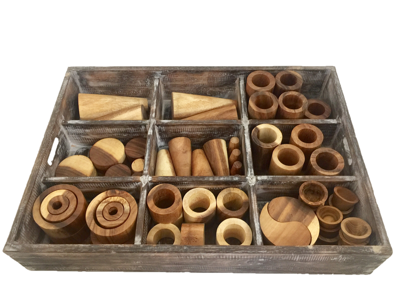 Made from sustainably sourced Suar wood, these are all natural open ended toys that are beautiful in their own right! Look at that colour and grain. Please note that of course there are going to be differences in both colour and grain due to the fact that they are made from natural wood.
