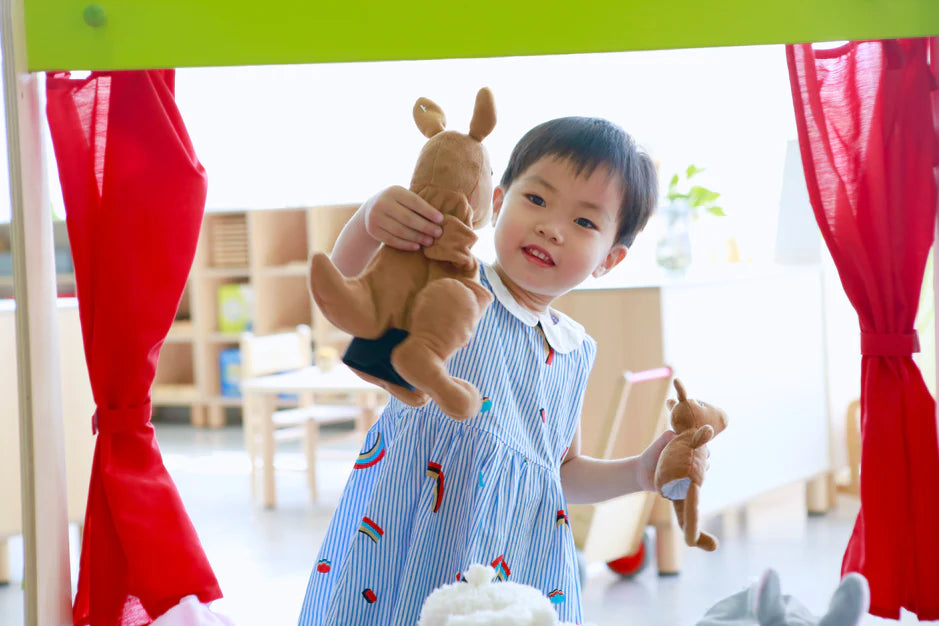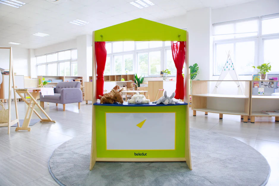 This luxury theatre is made of wood and textiles and provides a provocation for children to perform plays and immerse themselves in roles.
