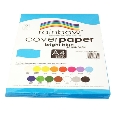 A premium 125gsm paper FSC Mix available in a number of colours, sizes and pack types; Rainbow Cover Paper is a multi function paper product for both art & craft as well as office stationery needs.