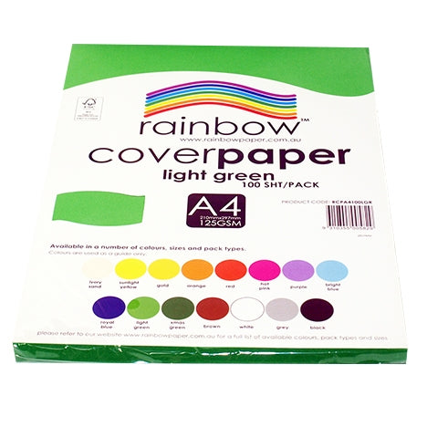 A premium 125gsm paper FSC Mix available in a number of colours, sizes and pack types; Rainbow Cover Paper is a multi function paper product for both art & craft as well as office stationery needs.