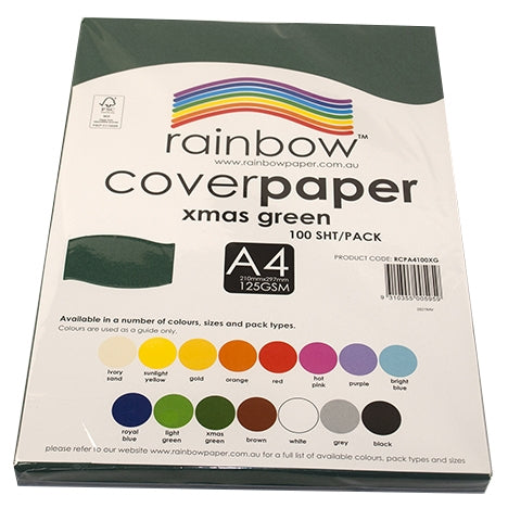 RAINBOW Cover Paper Xmas Green A4 100pk