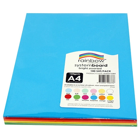 RAINBOW System Board 150gsm A4 100 Sheets (BRIGHT ASSORTED)