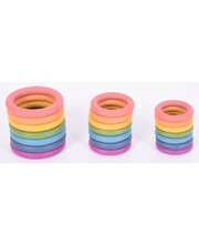 This set contains 21 wooden rings, each of the 3 sizes in the 7 colours of the rainbow. Can be rolled, threaded, used for sorting or sequencing, or set as a stacking challenge for older children. Sizes are 4.8cm, 5.6cm and 7cm diameter.