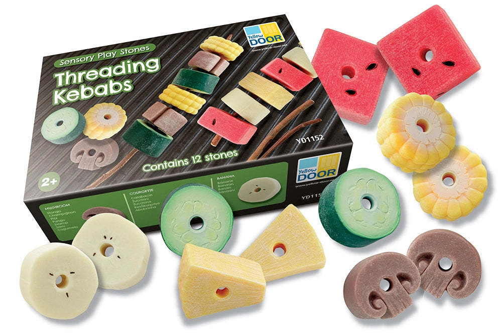 Made from a unique resin & stone mix, they are durable for use outdoors: in mud, sand, water, or soil. Each food stone measures 45–50mm and the set consists of 12 sensory play stones.