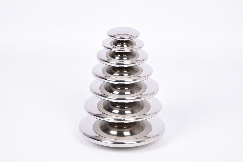 Robustly constructed from stainless steel, these 7 giant silver buttons have a pleasingly rounded discus shape with smooth seamless edges and are graduated in size from 50mm to 140mm diameter.