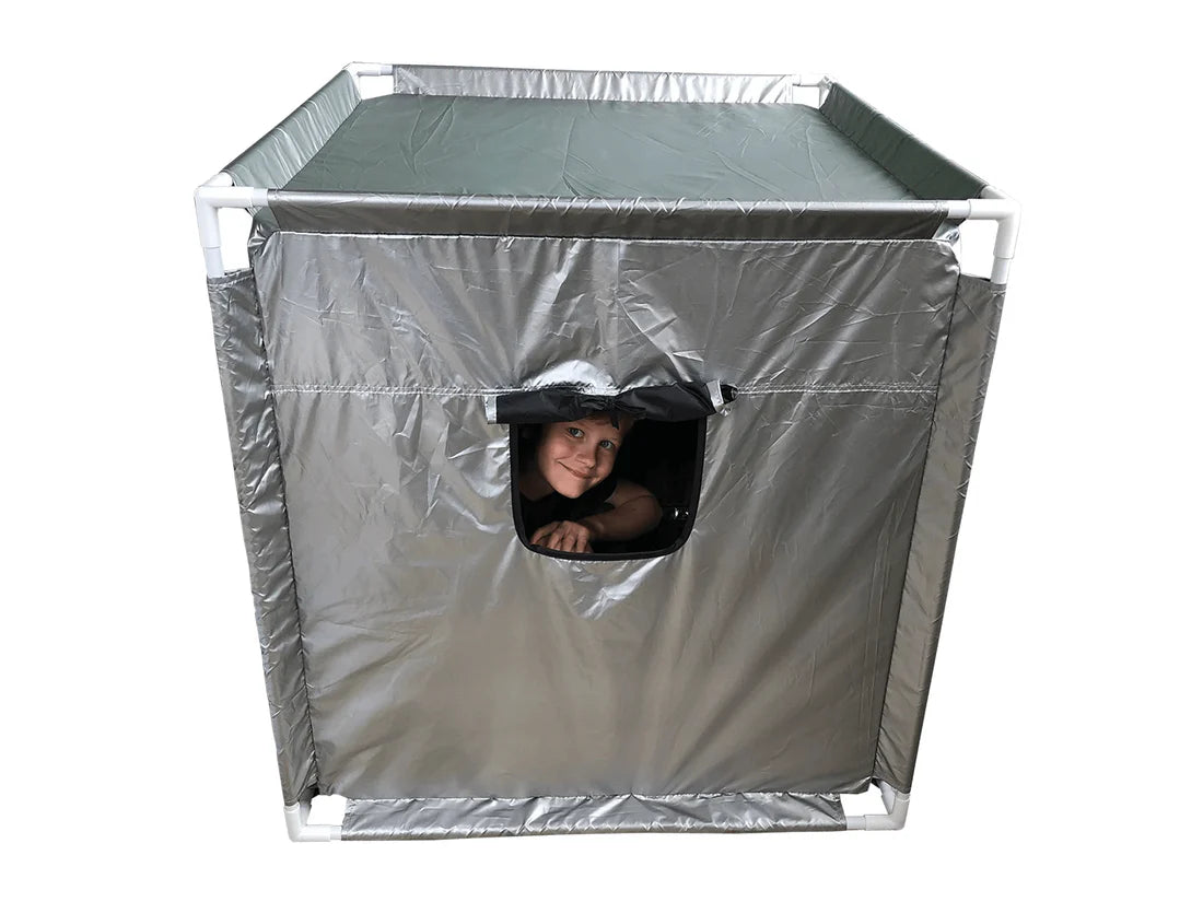 - Consists of 12 poles, 8 connectors and den cover in a storage bag.