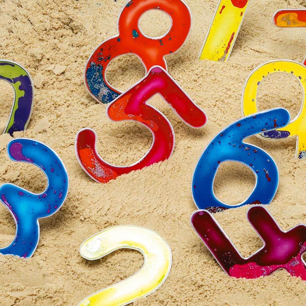 The numbers offer a special fun element to introducing number and sequences. Great to use on light boxes, water trays and sand pits.