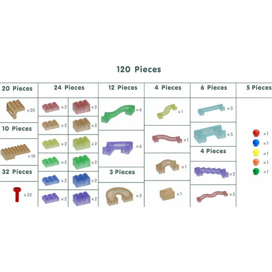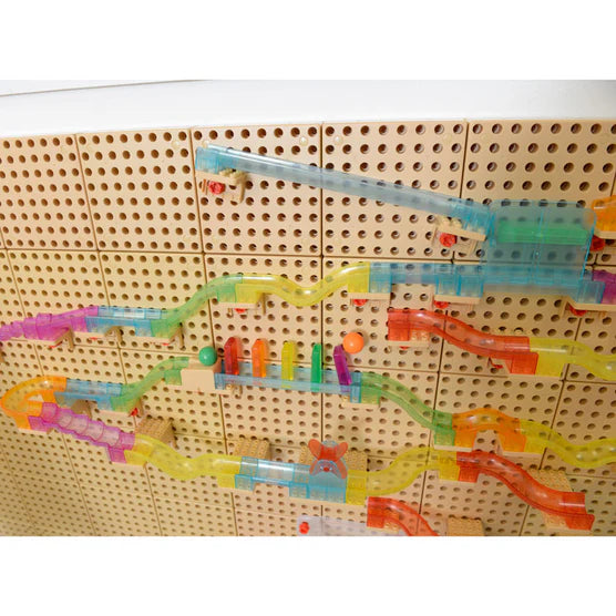 The Kinetic Ball TraX system can be played with on all Masterkidz STEM Walls and on a table or floor using the STEM Building Brick Baseplate.