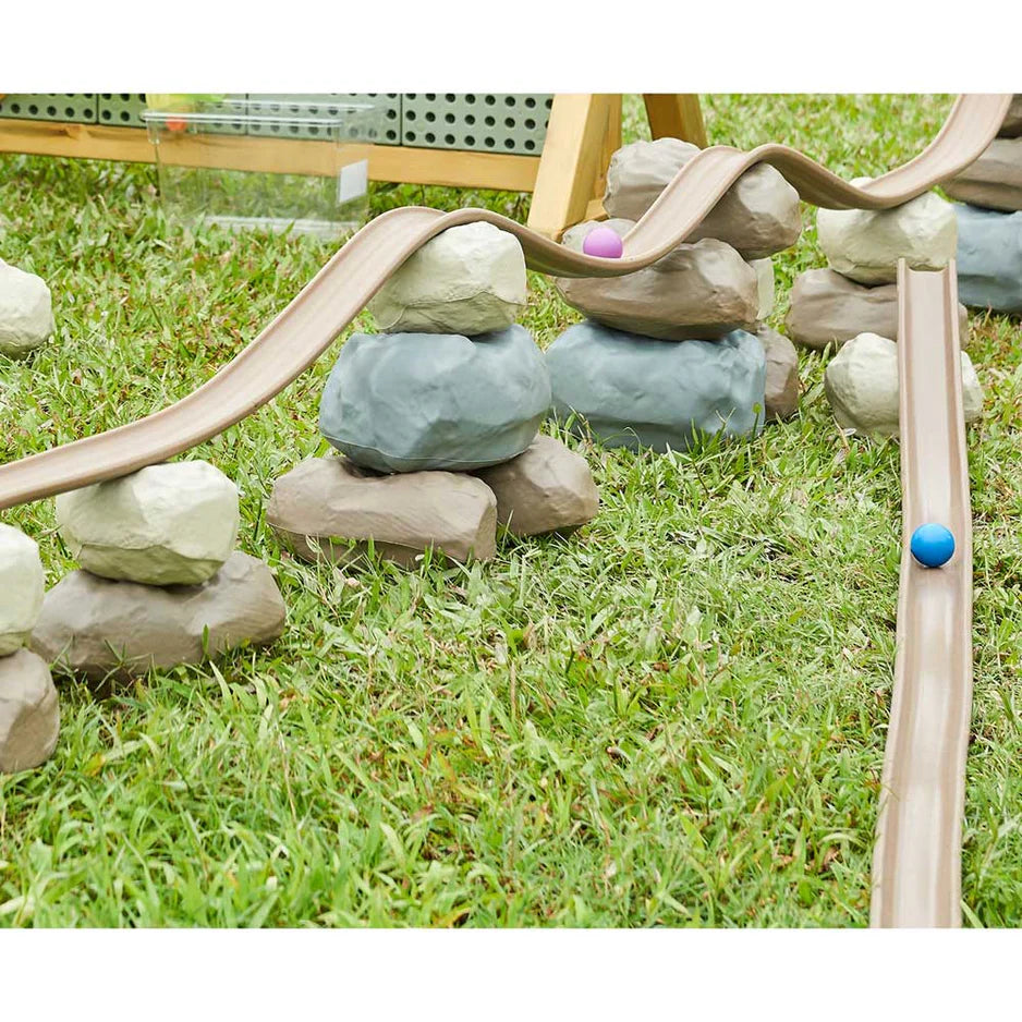 This makes it ideal for creating dynamic gravity feed systems for water, toy cars and balls. Using the Soft Foam Building Rocks children can make wonderful, contoured routes and channels.