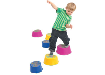 Each of these tree stump shapes are made of durable plastic with soft non slip surface rings that allow the children to safely experience balance and gain their confidence as they jump from tree stump to tree stump.