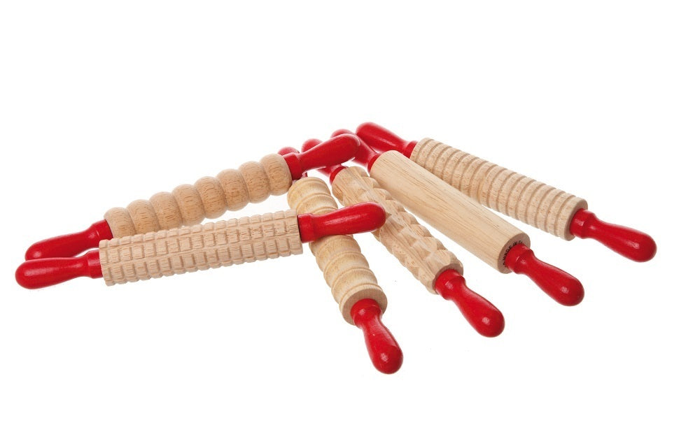 These Wooden Textured Rolling Pins are great for helping little hands to flatten and shape out dough.