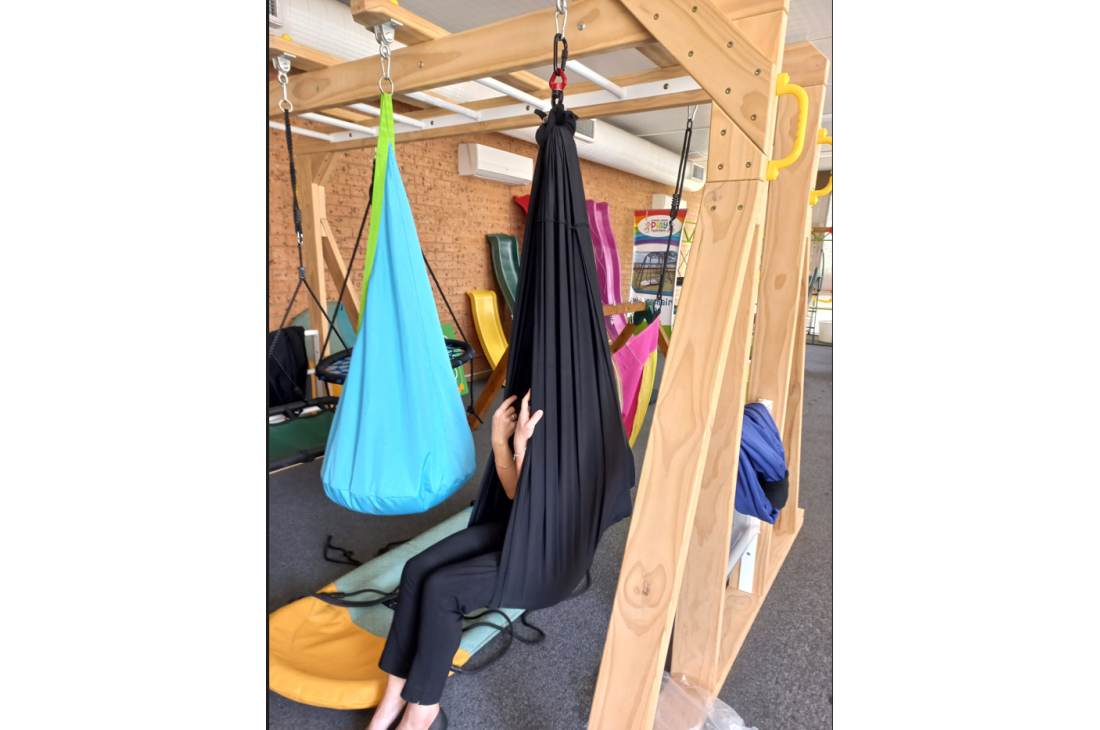 The kids can climb in the swing, stretch out and move around inside the swing, they learn body awareness, balance, motor planning and spatial skills.