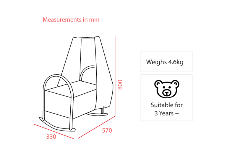 Featuring a powder-coated steel frame, washable soft fabrics and incorporating a built-in rocking motion, this doll’s cradle will make your child the envy of their peers.