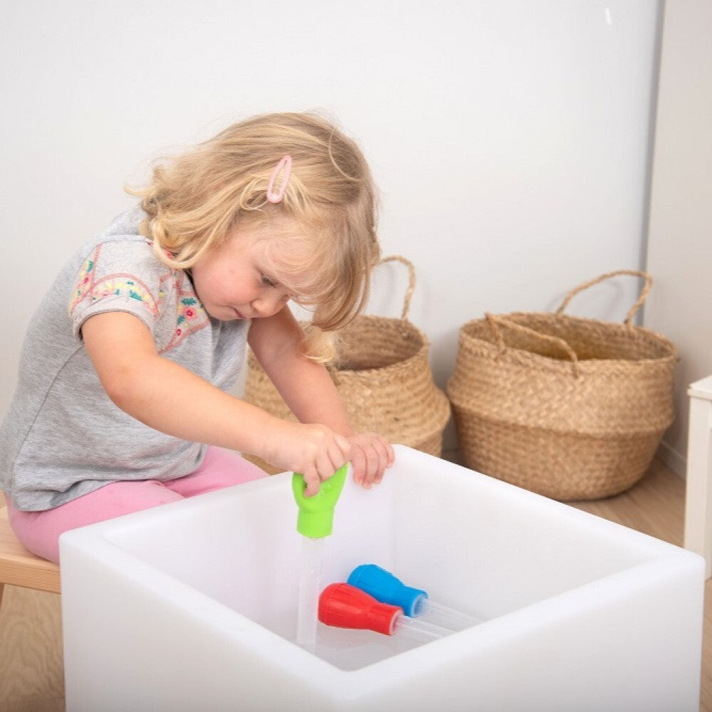 A fun addition to sand and water play, for younger children to experiment with liquid properties and older children to learn about volume and measurement.