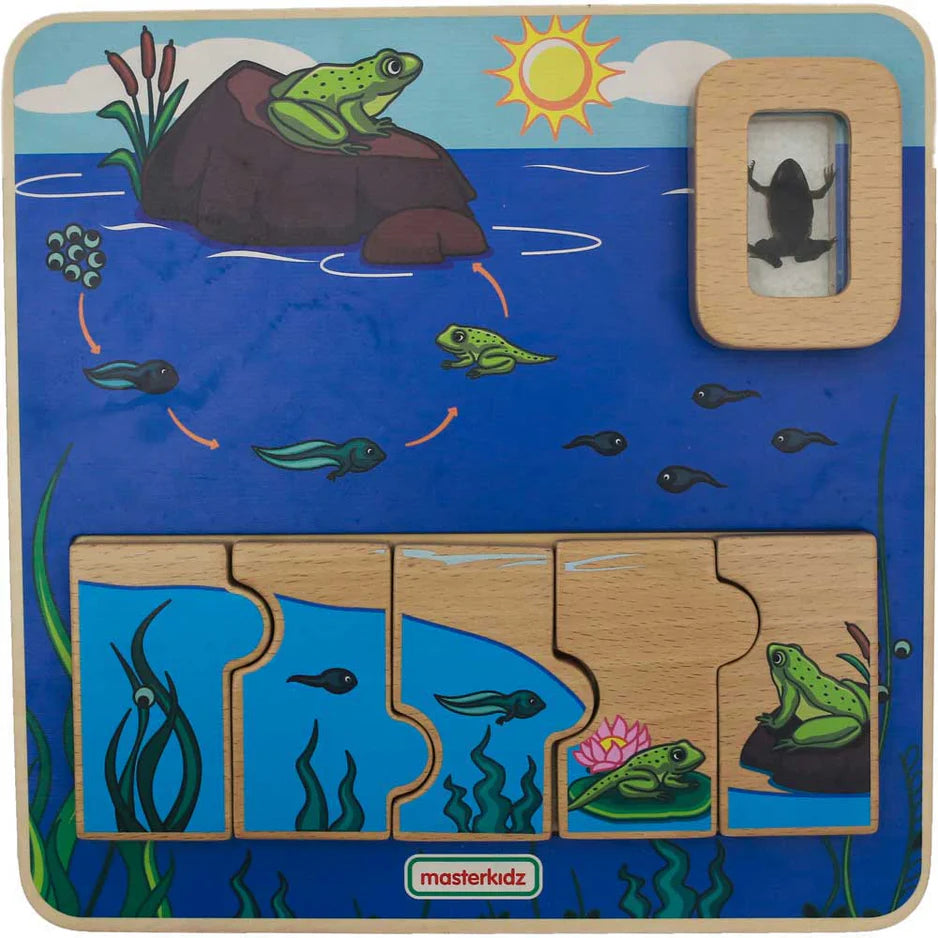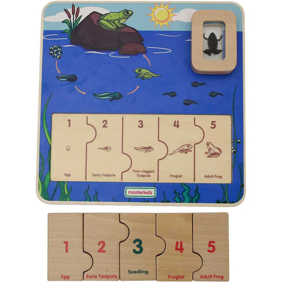 It comes with five numbered puzzle pieces representing the stages of a frog's life cycle, including the egg, tadpole, froglet, and adult frog. In addition, there are labels to further aid comprehension. With this activity, children can learn all about the incredible transformation from egg to adult frog in a fun and interactive educational way.